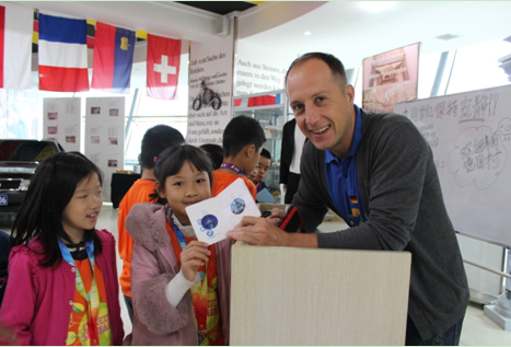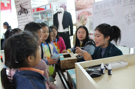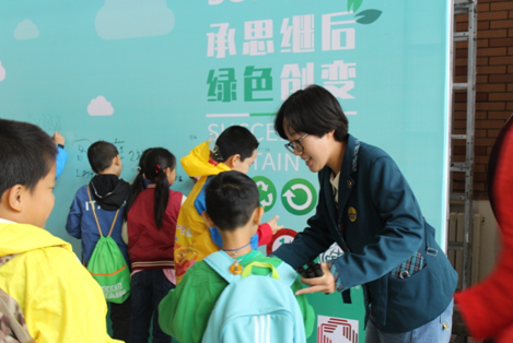 西班牙语1803班学生刘绍民、汉语国际教育1802班梁慧淇介绍说:“志愿者们来自各个专业,尽管是十一假期,但大家都是主动加入到服务工作中。我们通过与外教及留学生的沟通,锻炼自己的外语水平,同时也向小学生们介绍地球村及各国文化知识,展示我们的专业学习成果。”