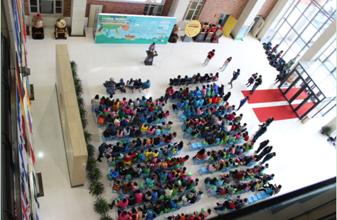 10月4日上午,我校地球村迎来了230名小学生。他们在中外教师的带领下走进9个语言国家村,参加了“小小外交官,同住地球村”外国文化知识闯关活动。