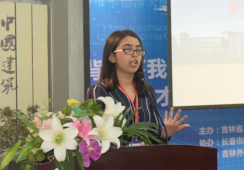 我校中国政府奖学金生、俄罗斯留学生尤利娅用中文发言,通过讲述自己在吉外的学习生活,希望美国同学们喜欢吉外、不虚此行。