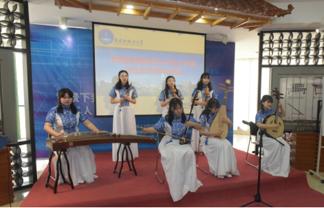 随后,我校大学生艺术团表演了精彩的中国传统乐器合奏和极富中国民族特色的舞蹈。