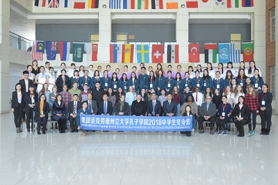 3月15日上午,美国圣克劳德州立大学孔子学院2018学生访华冬令营开营仪式在我校国际语言文化实践教学中心——地球村中国村举行。来自美国的20名学生将进行为期12天的中国文化体验活动。