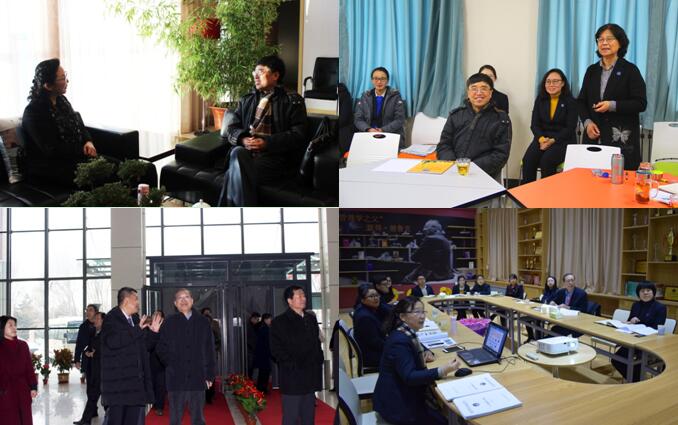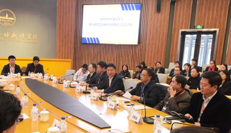 评估专家贾文键、王铭玉等访谈秦和校长及行政单位负责人,考察国际语言文化实践教学中心——地球村