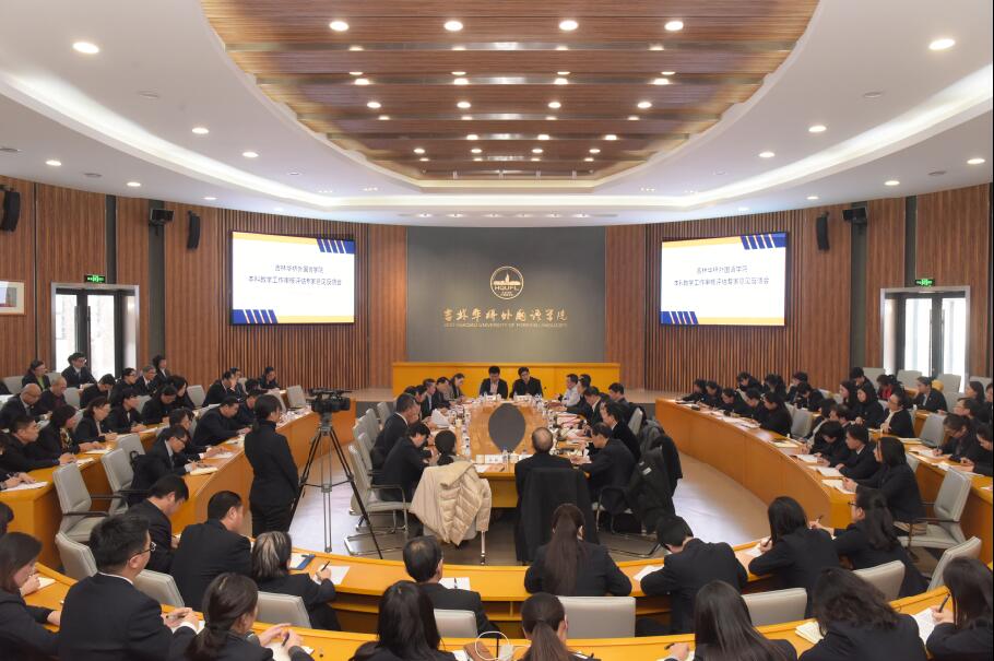 12月14日下午,吉林华桥外国语学院本科教学工作审核评估意见反馈会在国际交流大厦报告厅举行。教育部审核评估专家组组长瞿振元等10位专家组成员,教育部评估中心项目主管孙颖、秘书张磊、李虎成,吉林省人民政府教育督导委员会总督学(副厅长级)许世彬,吉林省教育厅高教处处长宋辉、副调研员赵欣雅出席会议。秦和校长等校领导、各行政单位负责人、各学院院长和系(教研室)主任参加会议。教育部审核评估专家组组长瞿振元主持会议。