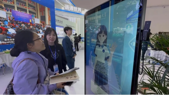 人工智能专业学生示范讲解“吉桥桥非遗文化国际传播数字机器人”