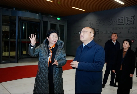 邱江部长在秦和校长陪同下调研国际语言文化实践教学中心(地球村)