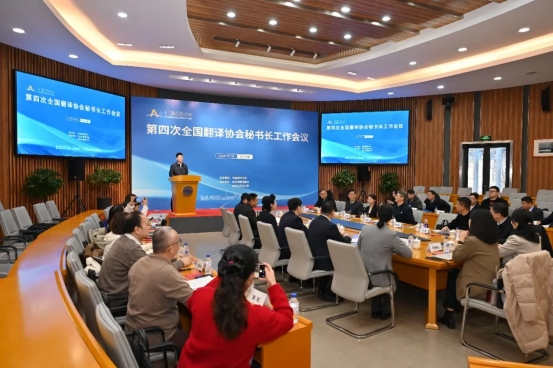 12月21日,由中国翻译协会主办、吉林省翻译协会与吉林外国语大学承办的第四次全国翻译协会秘书长工作会议在吉林外国语大学举行。中国外文局总编辑、中国翻译协会常务副会长兼秘书长高岸明,吉林外国语大学校长、中国翻译协会常务副会长、吉林省翻译协会会长秦和,吉林省外事办公室副主任赵树新出席会议并致辞。来自全国各省区市的24家翻译协会近50名代表参加会议。