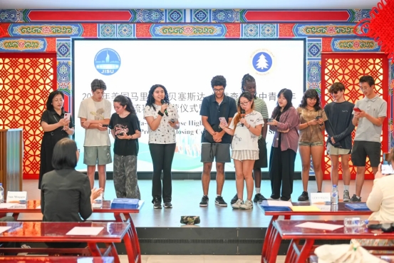 结营仪式现场,与会领导为美国学生颁发了研学营结业证书。美国学生们分享了此次长春研学活动的真切体验,并与中国师生合唱《茉莉花》,旋律中传递和平友谊之愿。