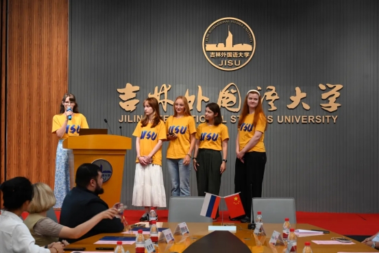 吉林外国语大学副校长王志国、国际交流与合作处处长兼国际交流学院院长宋丹丹,俄方带队教师叶菲门科·玛丽亚、谢诺特鲁索夫·维达利、学生团组相关负责教师以及全体俄罗斯研学师生参加活动。