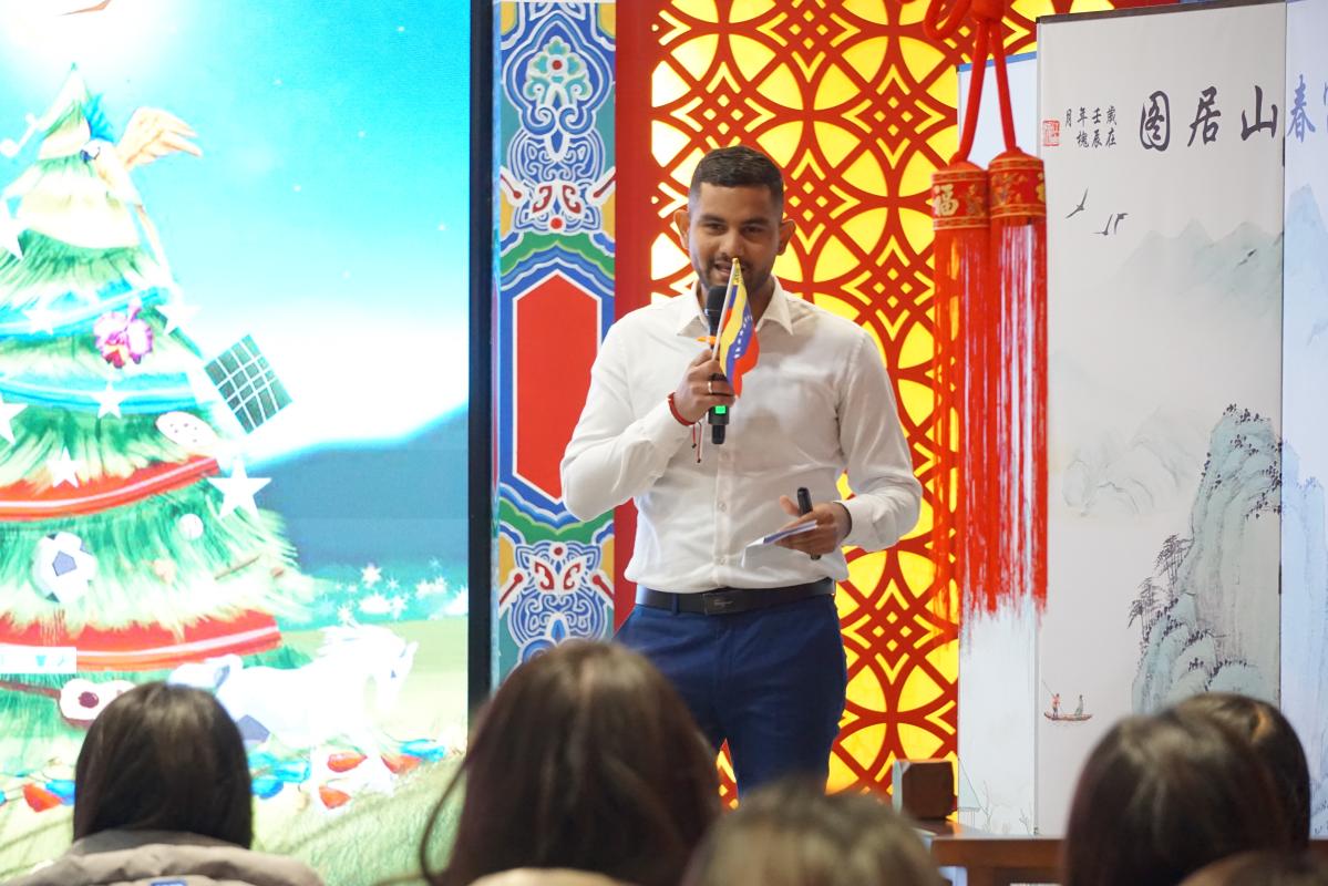 在这场世界多元文化交流会的“文化鉴赏”板块中,以历史与当代、本土与世界为经纬,让文化从符号变为可感知的精神载体。梁景雳同学以《青铜之冠》追溯商周文明的厚重;贾慧琳同学通过《Prost!慕尼黑啤酒节》展现德国民俗的友好热烈;张博涵同学的《中国服饰的发展脉络与文化表达》梳理传统服饰的演变;研究生李兵兵、吕怡萱分享《中国传统建筑的智慧与现代城市的融合》,探讨古建筑的传承之道。此外,意大利留学生江菊莉、委内瑞拉留学生宋恩、墨西哥留学生开文成、法国留学生费珂蕾分别带来《威尼斯狂欢节》《委内瑞拉圣诞节庆祝活动》《墨西哥的Alebrije文化》《里昂的灯光节》,让异域文化鲜活呈现。