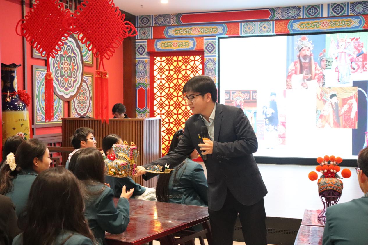 从中国商周的“青铜之冠”到德国慕尼黑的啤酒节,从墨西哥的亡灵节到里昂的灯光节——本次世界多元文化交流会由60名师生联袂呈现,以35个分享主题串联起一场跨越时空的文明对话。世界的斑斓与美美与共,被他们具象于每一个生动的演绎里。当日的吉外地球村,正因此成为文化爱好者的舞台,化身为世界文明交流互鉴的生动缩影。