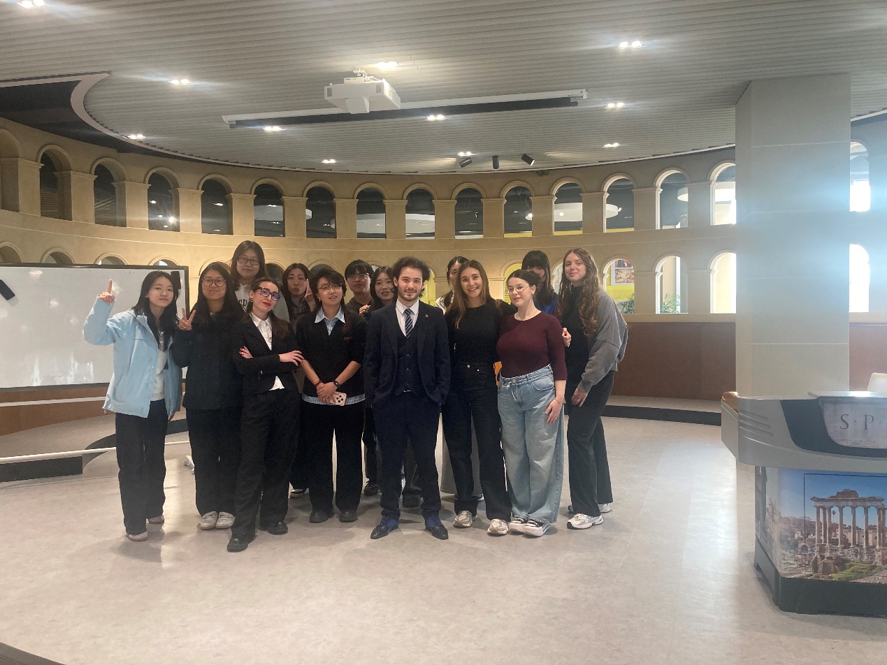 2026年3月31日下午,意大利语村成功举办“从罗马到那不勒斯”意大利文化分享会。来自意大利的留学生Elena、Lavinia、Lisa及Valeria齐聚现场,为意大利语系学生带来了一场兼具知识性与趣味性的文化盛宴,汪诗雄老师全程担任现场翻译。